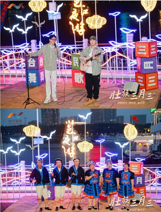 三月三期間,民生旅游碼頭邕江夜游項目推出穿民族服飾免費乘坐特定航班、躉船民族服飾試裝區(qū)、演奏非遺獨弦琴、滑板+陸沖極限運動賽、潮流音樂精良打酒站、少兒鴻鵠樂坊快閃等精彩活動,讓市民和游客們在這個廣西特有的節(jié)日里感受到了濃厚的民族文化氛圍和節(jié)日的歡樂,成為了市民和游客們歡度佳節(jié)的熱門選擇,留下了美好的回憶。