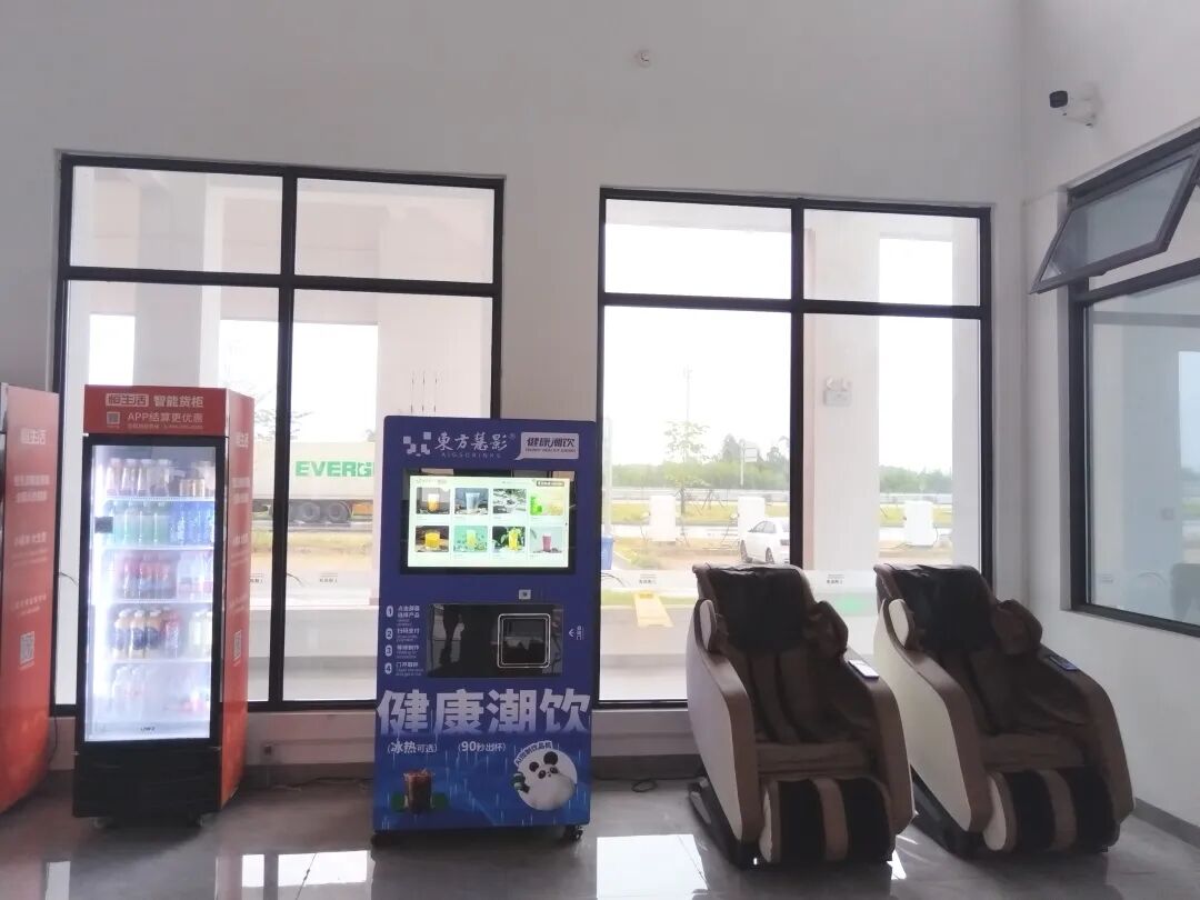 本次便民舉措以科技賦能和精細運營為核心,全面增強服務區(qū)功能內(nèi)涵。所有自助設備支持24小時不間斷服務,掃碼即可便捷使用,有效滿足夜間及應急時段的多元消費需求。自助售貨機除供應日常飲料零食外,還提供現(xiàn)磨咖啡、奶茶等熱飲選擇,關(guān)鍵時更能快速轉(zhuǎn)換為應急物資供應點,切實保障公眾出行安全。共享充電寶具備跨服務區(qū)歸還功能,有效緩解司乘旅途“電量焦慮”;共享按摩椅配備多模式放松功能,幫助司乘緩解旅途疲勞,進一步拓展服務區(qū)人文關(guān)懷體驗。