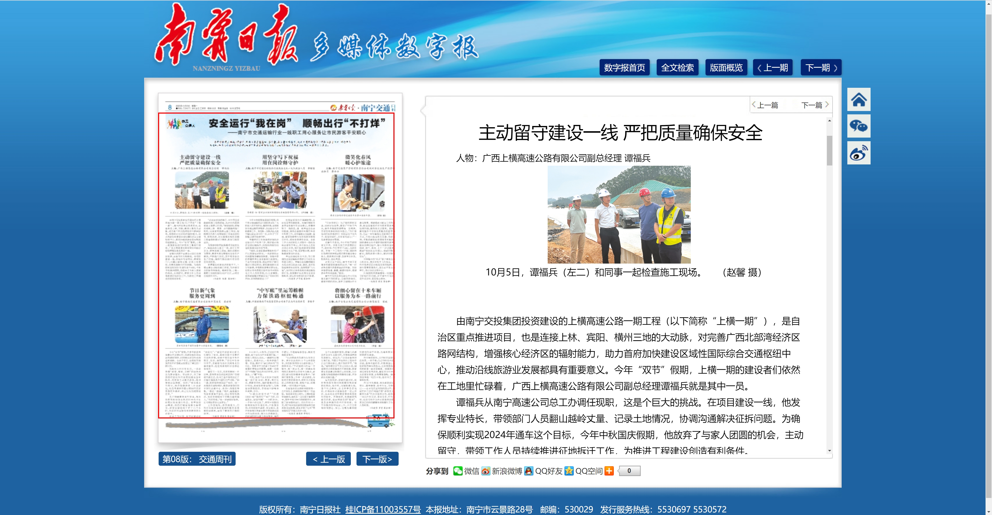 主動留守建設(shè)一線 嚴(yán)把質(zhì)量確保安全 人物:廣西上橫高速公路有限公司副總經(jīng)理 譚福兵