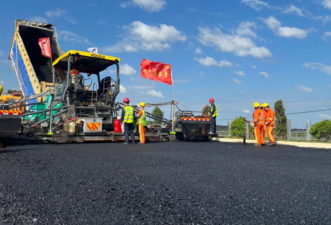 上橫高速公路完成首段瀝青下面層試驗段攤鋪作業(yè)